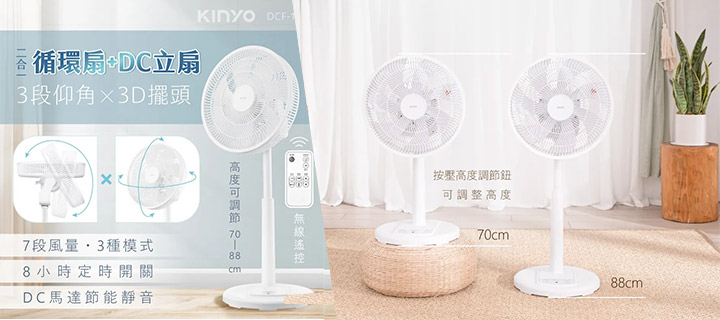 DC直流風扇【KINYO 14吋3D遙控二合一循環扇DCF-1420】✅可調整高度,是立扇也是循環電扇