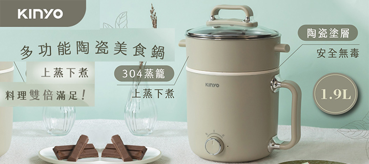 多功能電煮鍋【KINYO 陶瓷美食鍋1.9L】✅陶瓷不沾內膽,健康好清潔