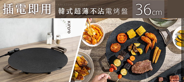 電烤盤推薦【KINYO 韓式超薄電烤盤36cm】✅5段火力✅導熱均勻,360度加熱零死角