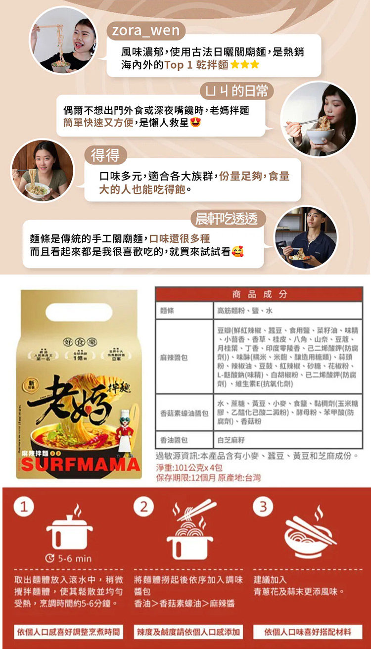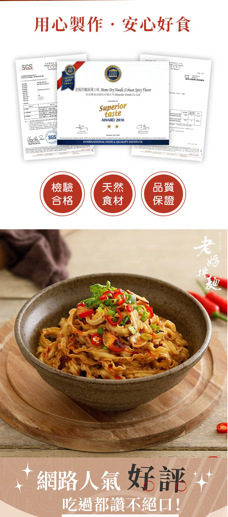 網購十大人氣乾拌麵【老媽拌麵 經典拌麵-四川麻辣101g】✖️4包✅手工日曬關廟麵Q彈有勁