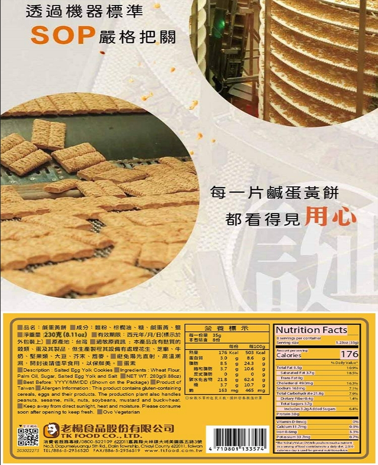 人氣零食【老楊 金沙鹹蛋黃餅230g】✅單片包裝,鎖住新鮮不怕受潮✅鹹蛋黃控必備