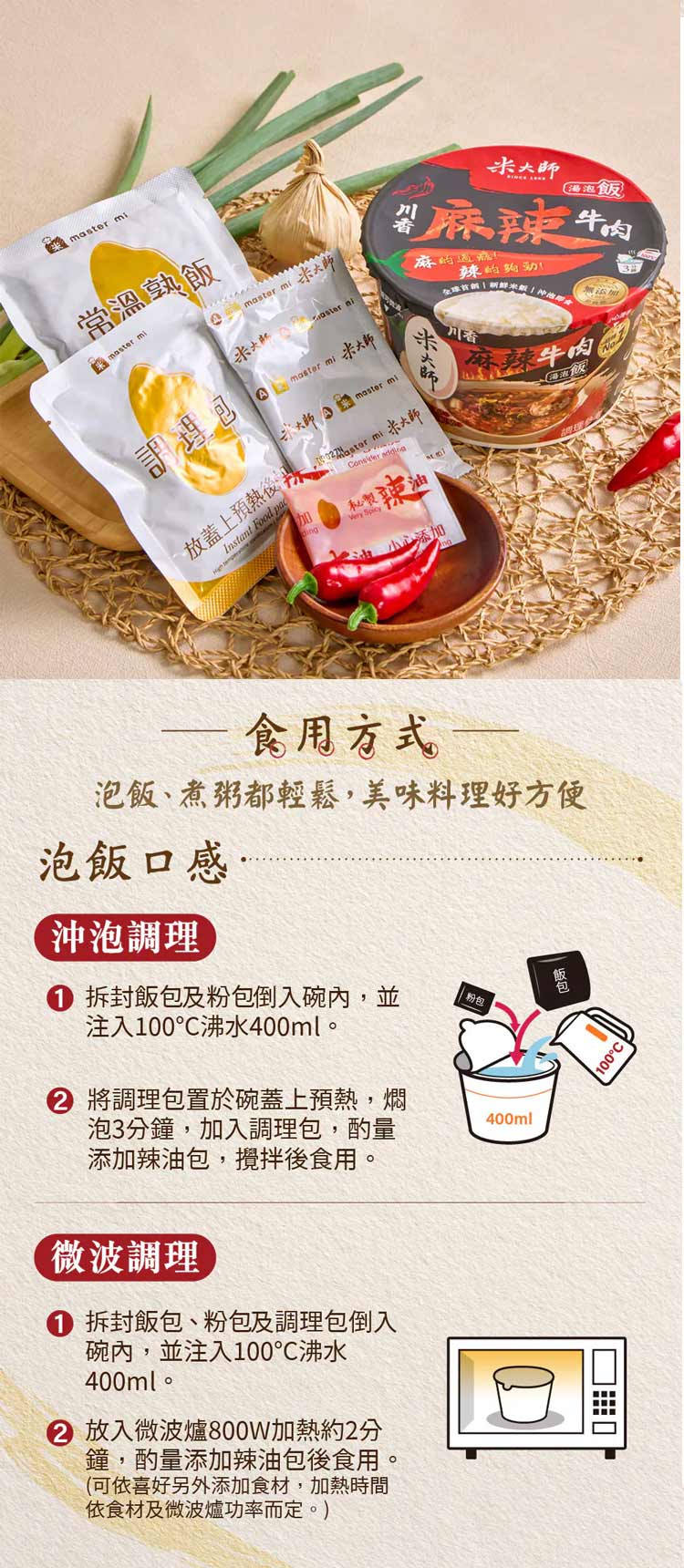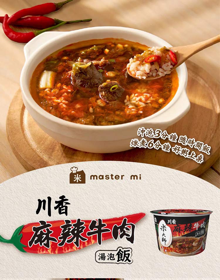 新鮮米沖泡即食 【米大師 川香麻辣牛肉湯泡飯230g】✖️2碗✅非油炸非乾燥米✅3分鐘即食