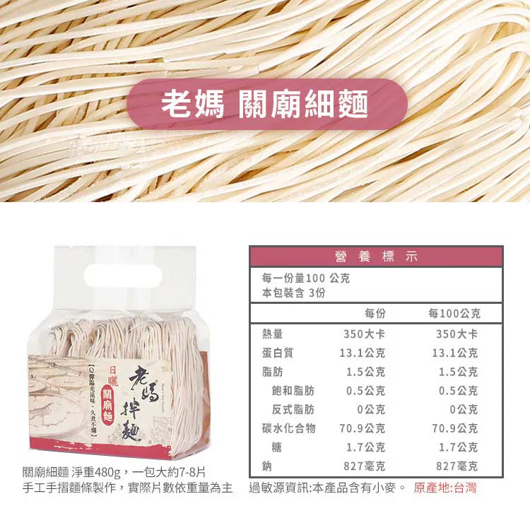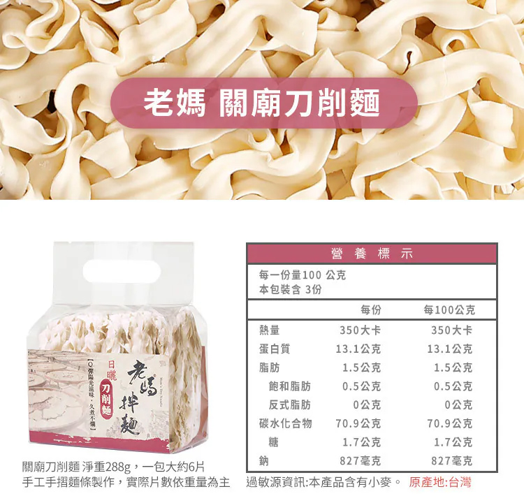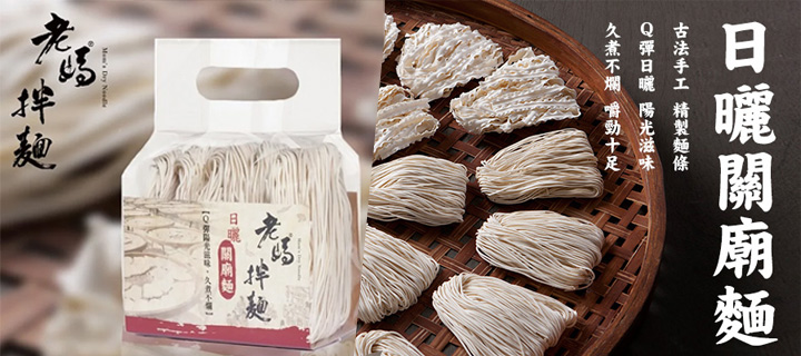 台南日曬關廟麵-老媽拌麵【關廟刀削麵×1包】+【關廟細麵×1包】