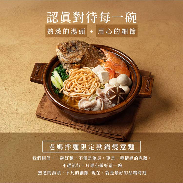【老媽拌麵 砂鍋魚頭風味鍋燒意麵】2碗