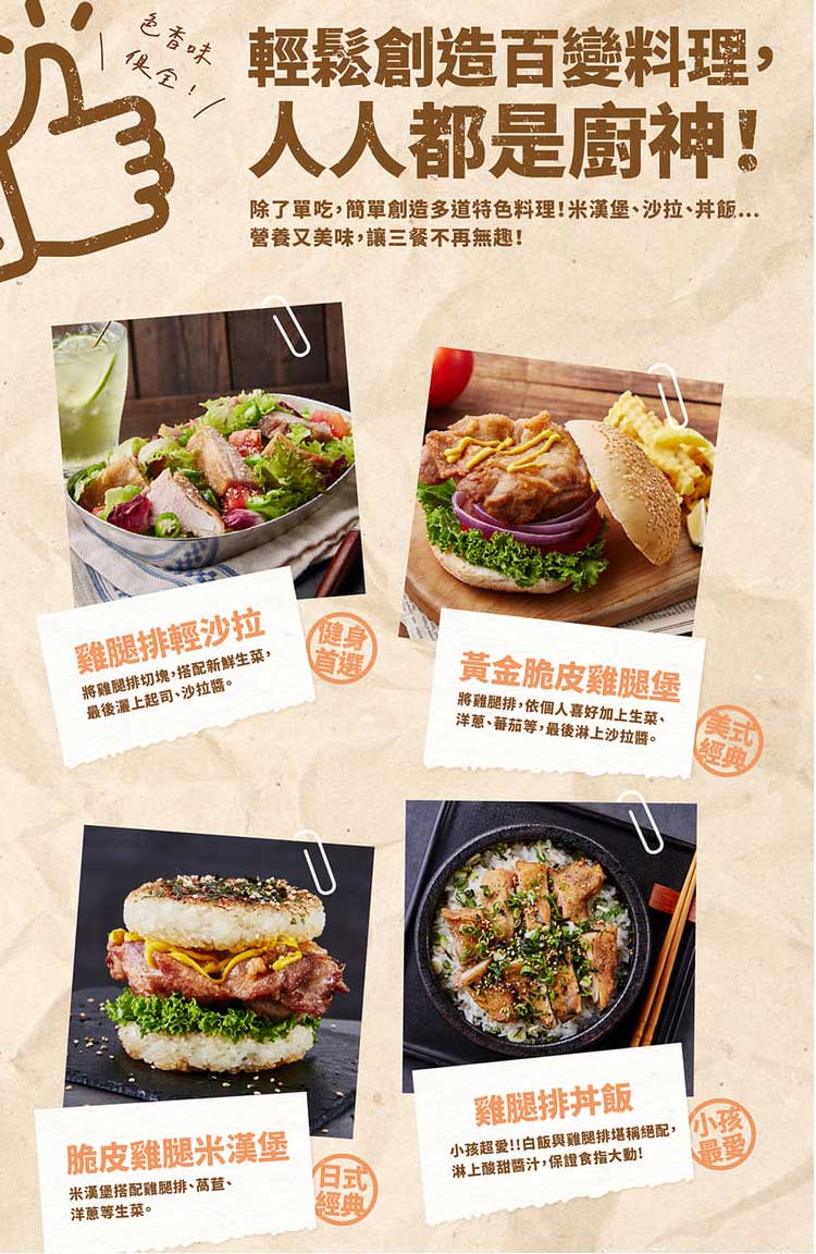 做成雞腿排漢堡、搭配咖哩飯,百搭料理王