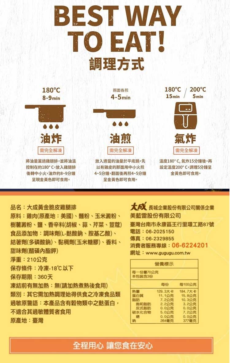 🔥網購TOP【大成 黃金脆皮雞腿排210g×3包】✅爆汁厚切,皮脆肉嫩超啾西✅完整原塊雞腿肉