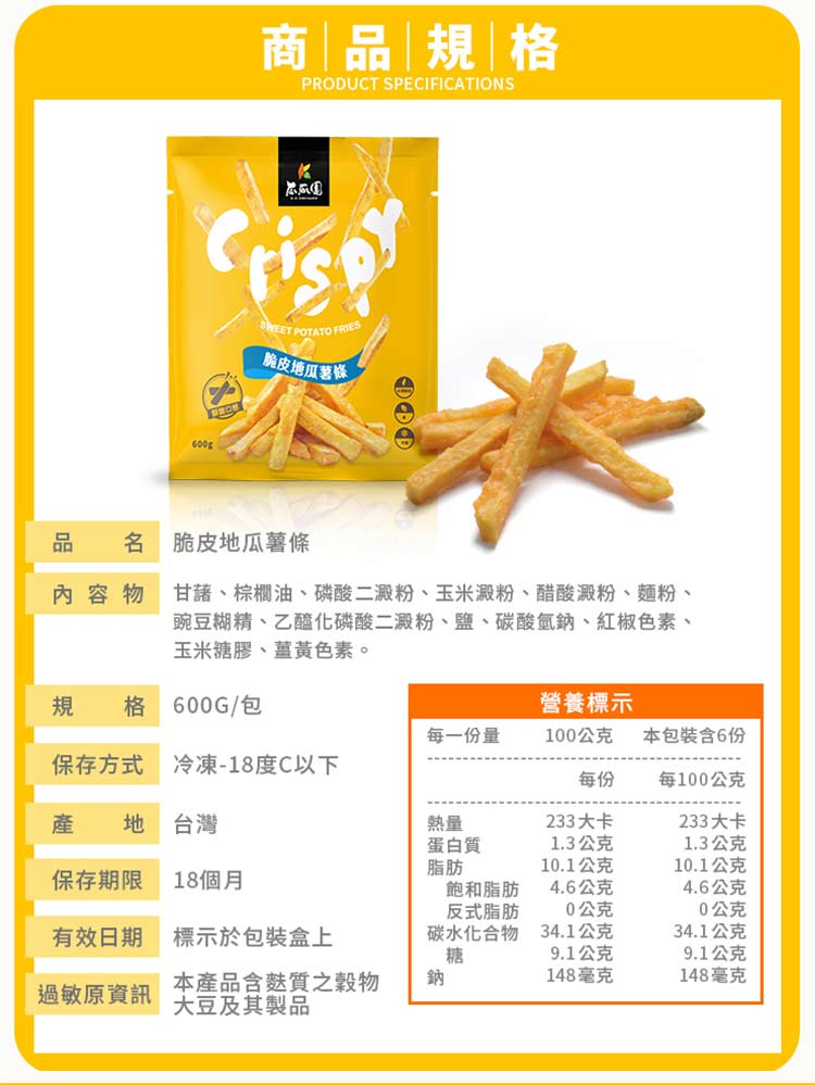 【瓜瓜園 脆皮地瓜薯條600g】