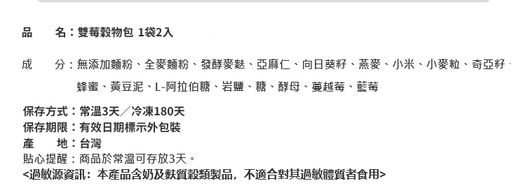【包仔仔 雙莓穀物包】×1袋2入