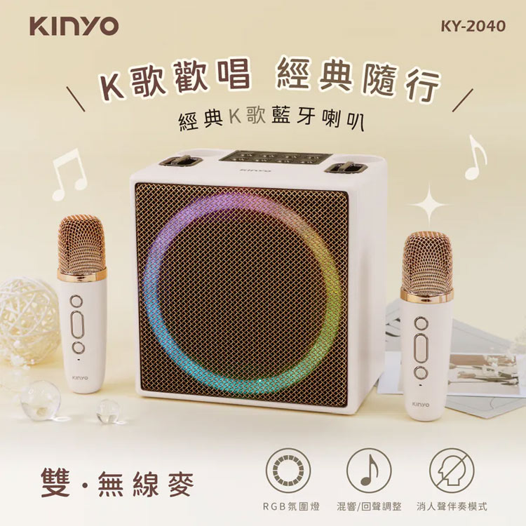 行動KTV【KINYO 經典K歌藍牙喇叭KY-2040 】🎙️附贈2支無線麥克風