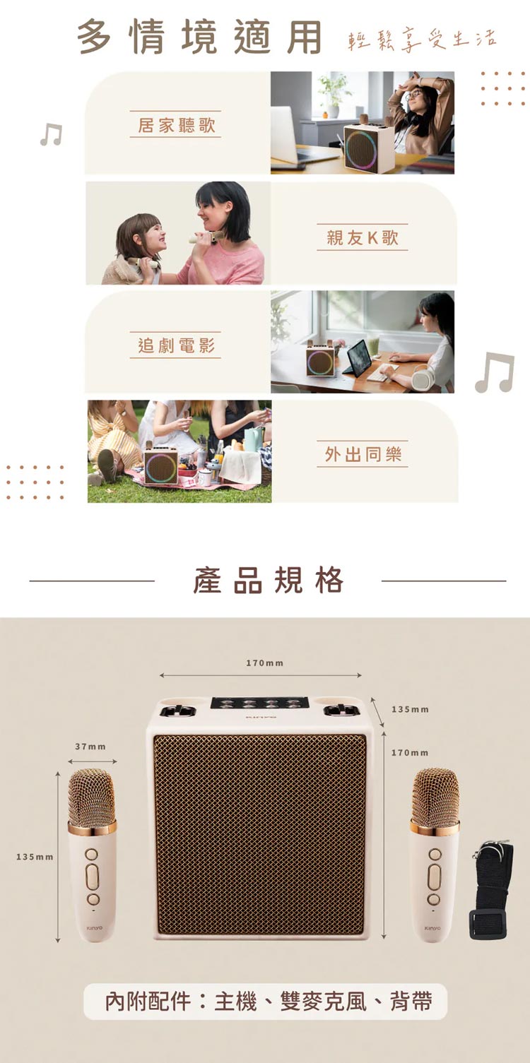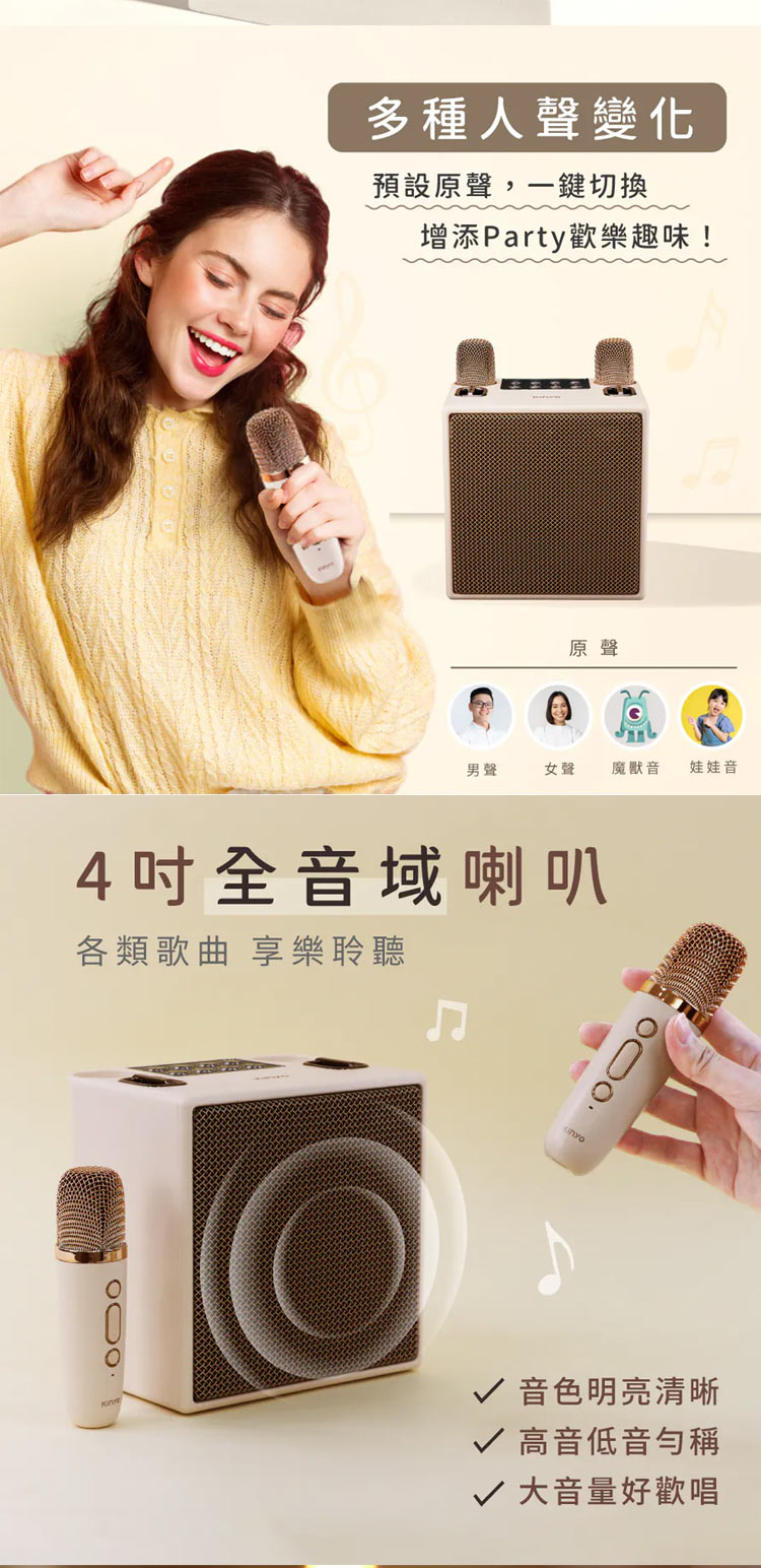 🎙️附贈2支無線麥克風,合唱不用搶!