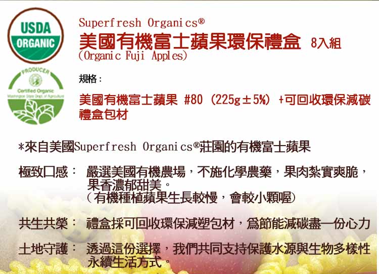 【八方平安】美國有機富士蘋果8入禮盒
