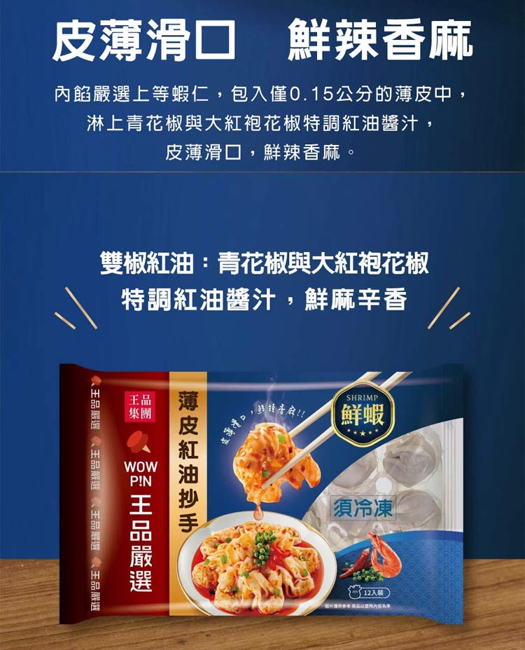 名店級冷凍美食推薦【王品嚴選 薄皮紅油抄手-鮮蝦×12顆】🕒 3分鐘,在家還原王品名菜