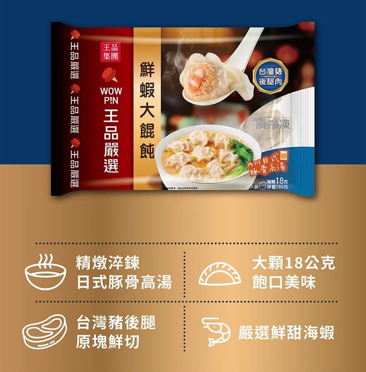 名店級冷凍美食推薦【王品嚴選 鮮蝦大餛飩×12顆】煮完不破皮、咬開有大蝦🦐