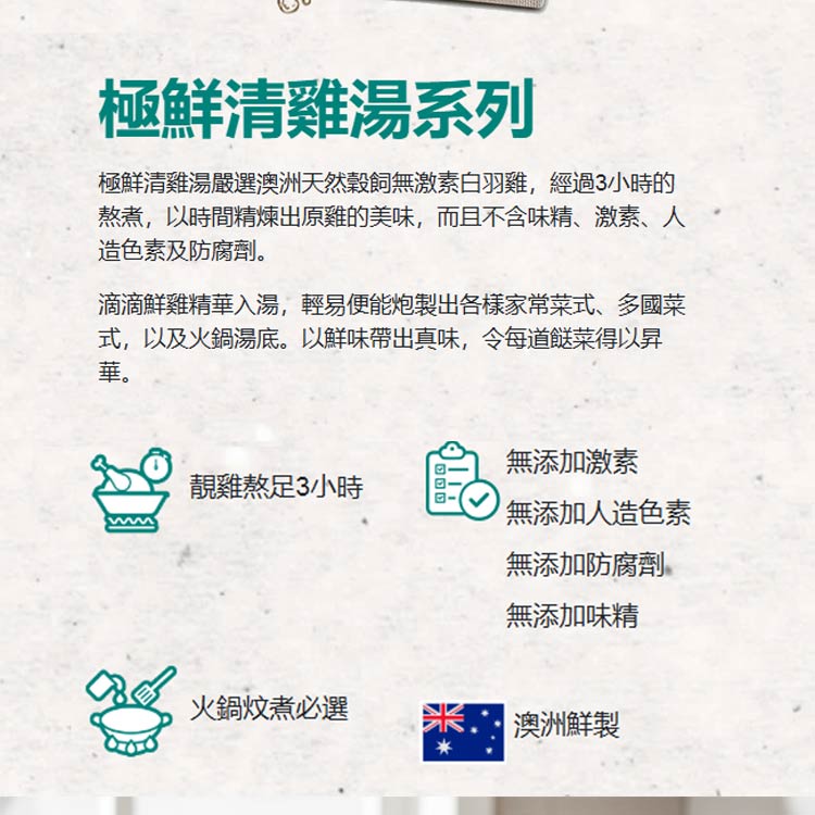 ✅成分單純:嚴選非基因改造食材,喝到鮮雞原味
