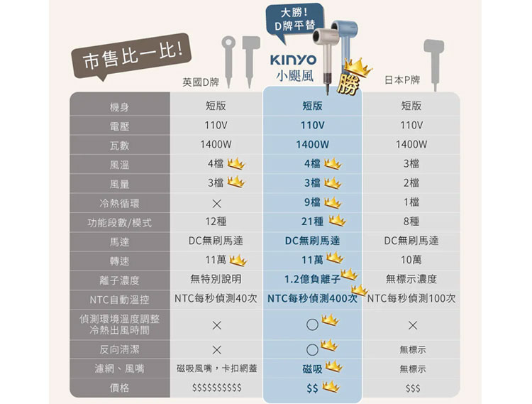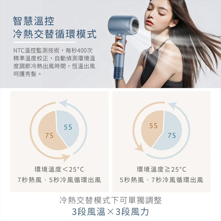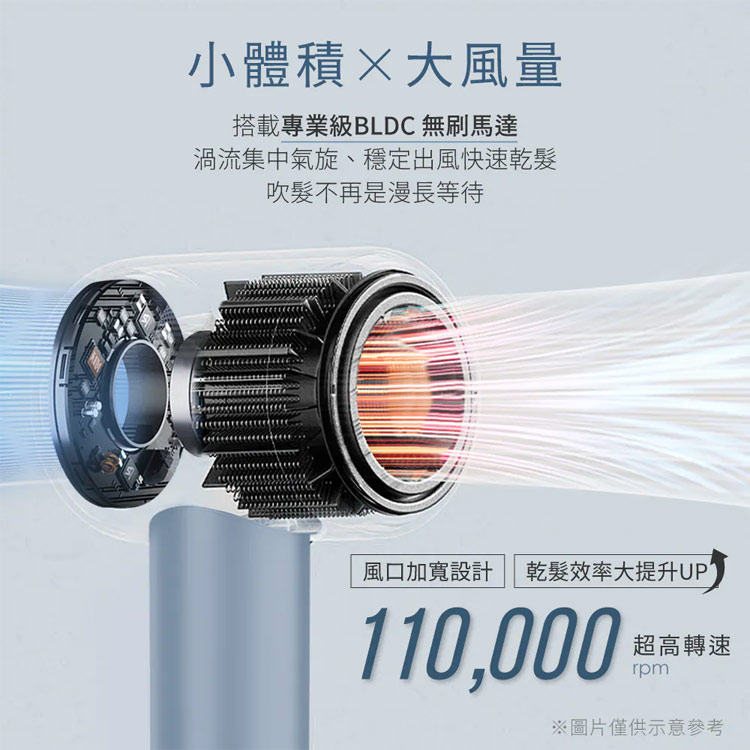 ✅11萬轉高速馬達:強風速乾,縮短一半吹髮時間