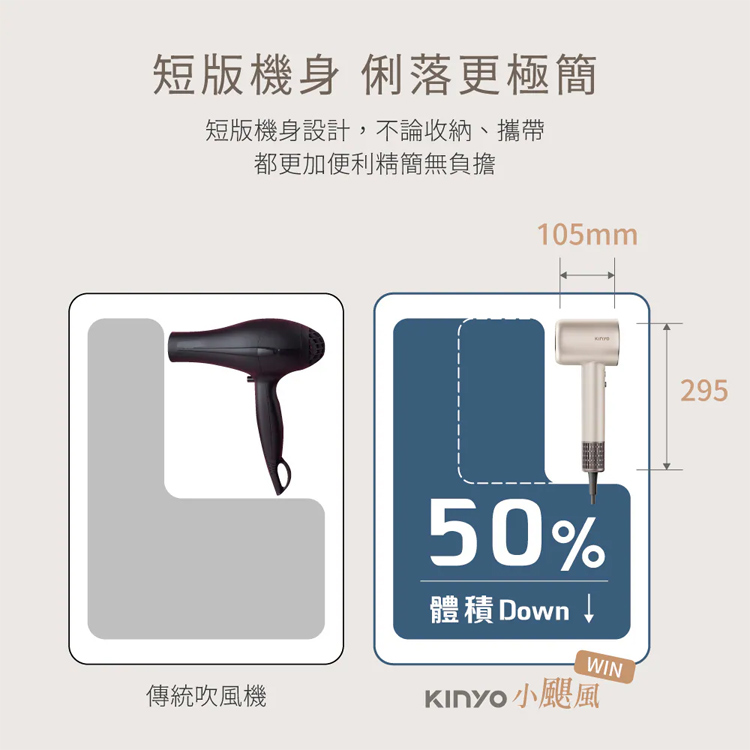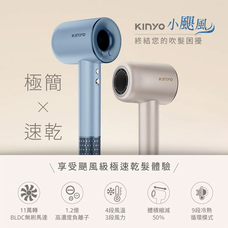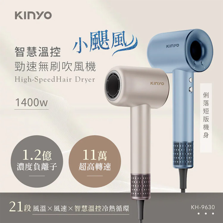【Kinyo 短版無刷吹風機KH-9630BU(藍)】