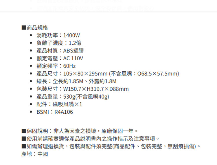 ✅1.2億負離子:減少靜電打結,吹完頭髮超乖順