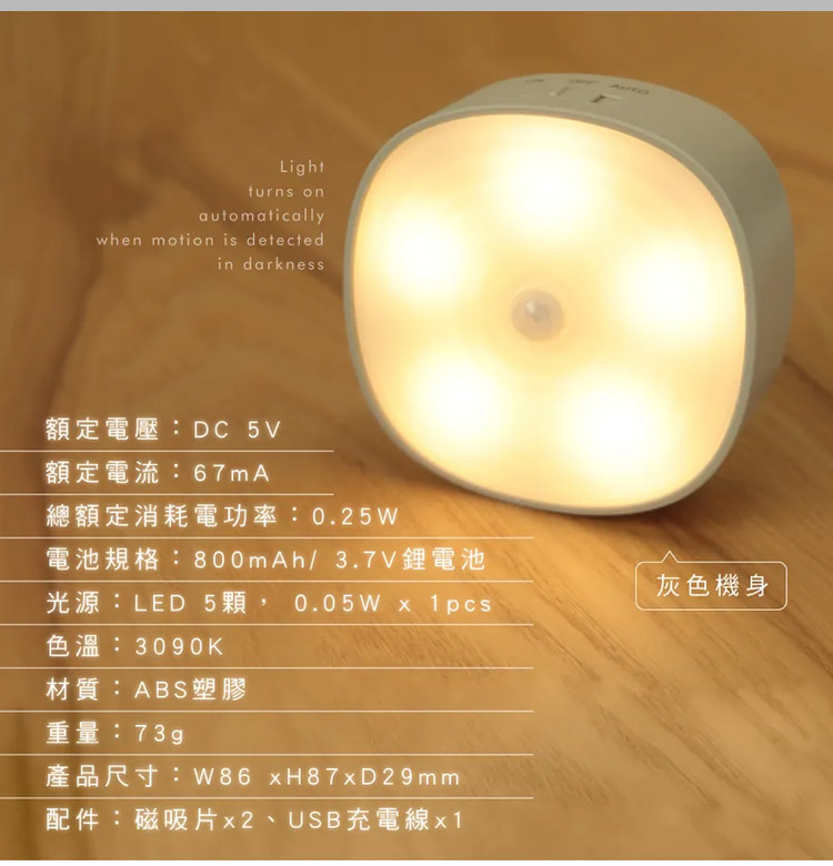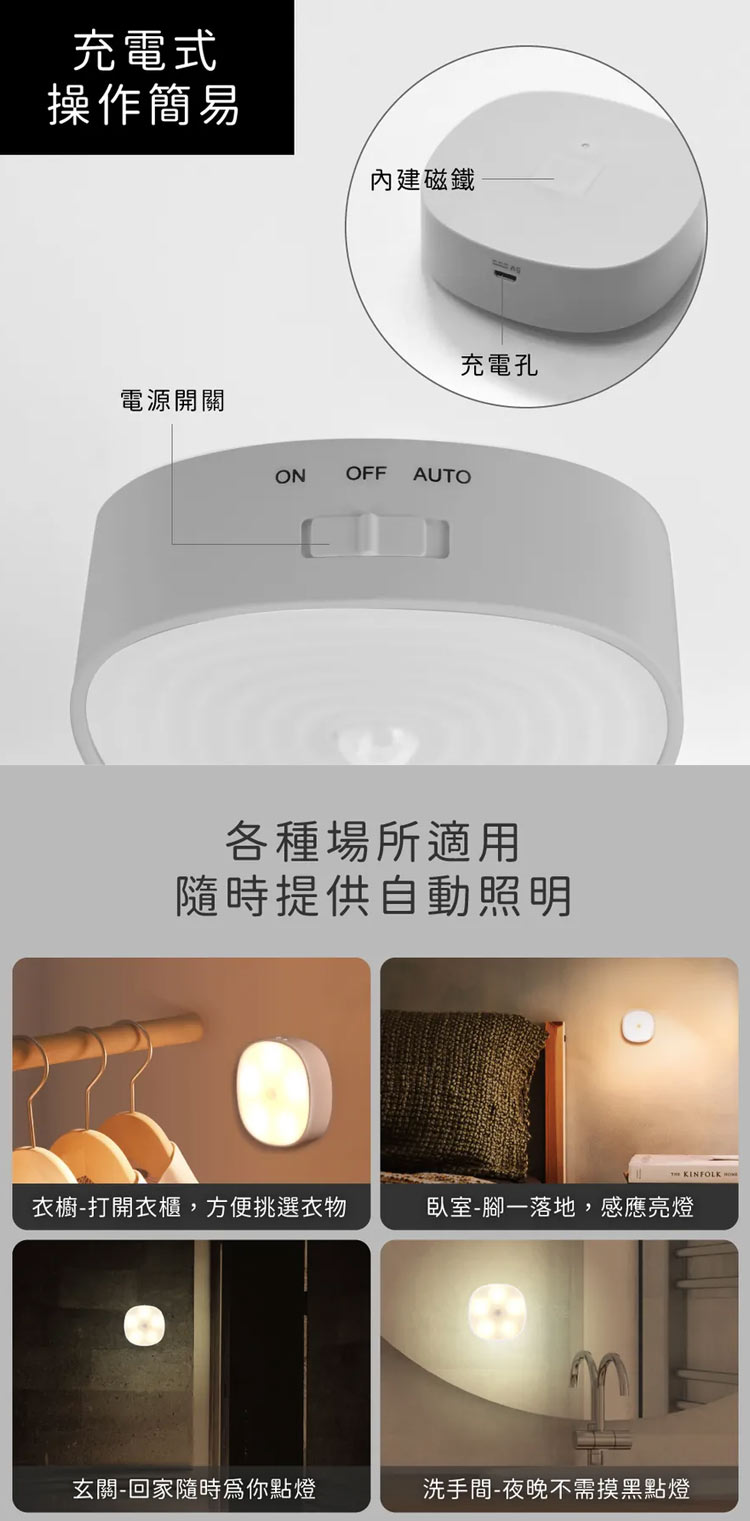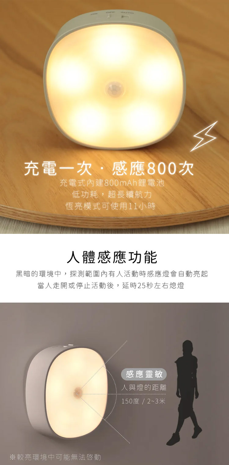 【KINYO 充電式磁吸人體感應燈SL-5390】