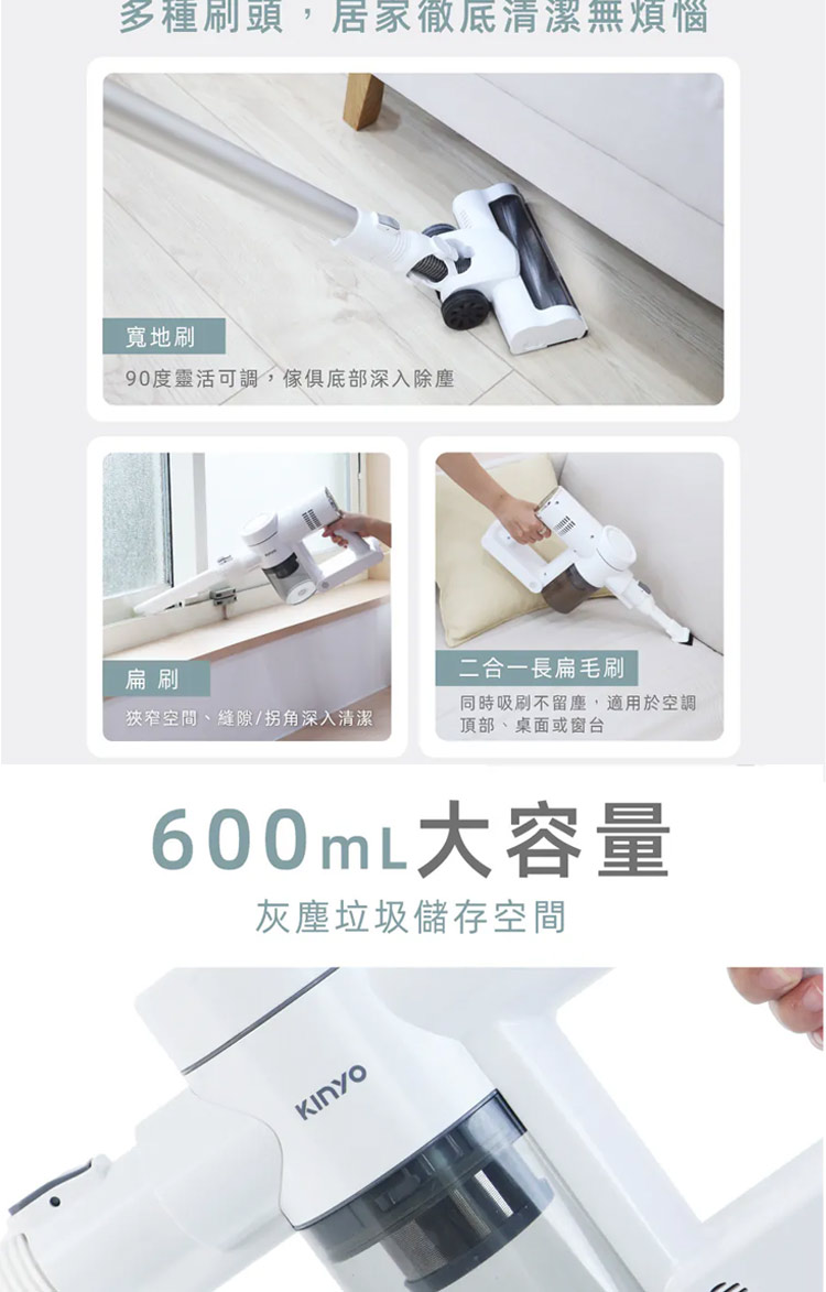 【KINYO 手持無線有刷吸塵器KVC-6239】