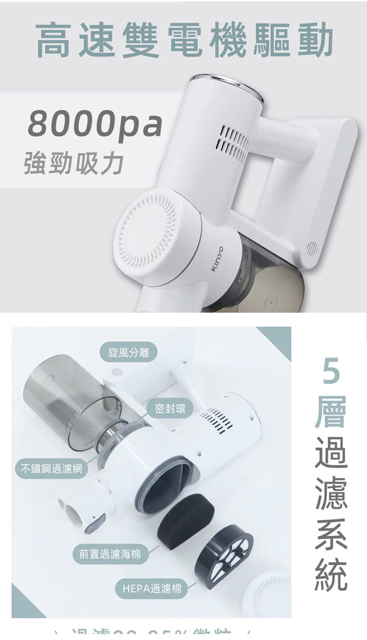 千元級CP值王【KINYO 手持無線有刷吸塵器KVC-6239】耗材可水洗,省錢更環保