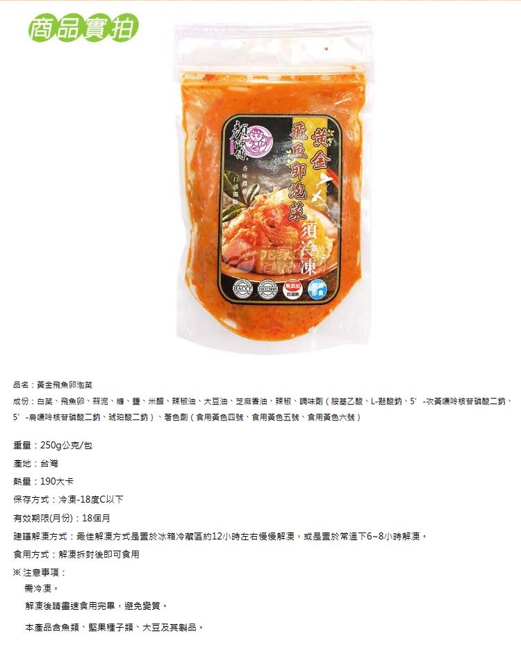 【顏師傅 黃金飛魚卵泡菜250g】