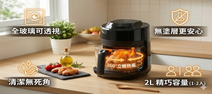 年銷售破億品牌【one-meter 2L玻璃氣炸鍋OBO-25025GF】✅全方位透視,看見烹調過程 ✅不沾塗層掰掰,高硼矽玻璃內鍋,無毒耐高溫✅超好清洗,只需輕鬆一沖✅精緻小巧,不佔空間✅不用油也能炸出卡滋口感,深夜吃鹹酥雞少點罪惡感✅微電腦觸控,記憶模式功能✅360度立體熱風循環