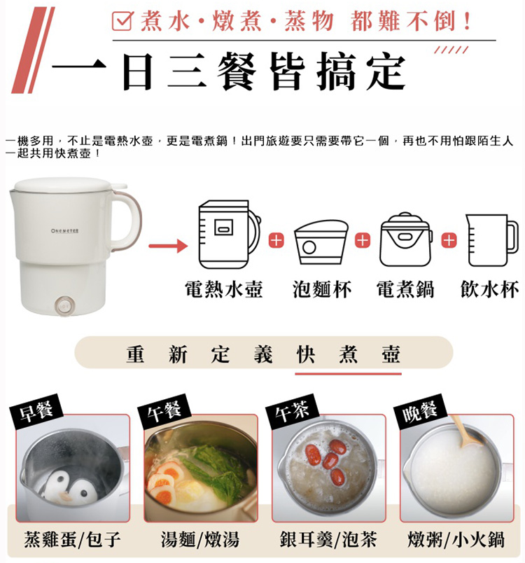 是電熱水壺,也是電煮鍋!出門旅遊只要帶上它,不必和陌生人一起共用快煮壺。折疊式設計,外出露營攜帶方便。兩段溫控,一日三餐一壺搞定〰️