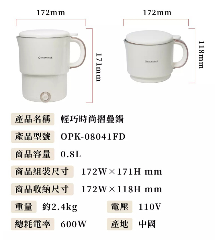【one-meter 折疊快煮壺800L】加碼送蒸片