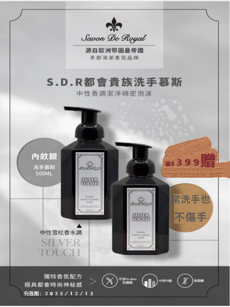 【SDR洗手慕斯 500ml 乙瓶】(原價 $399元)