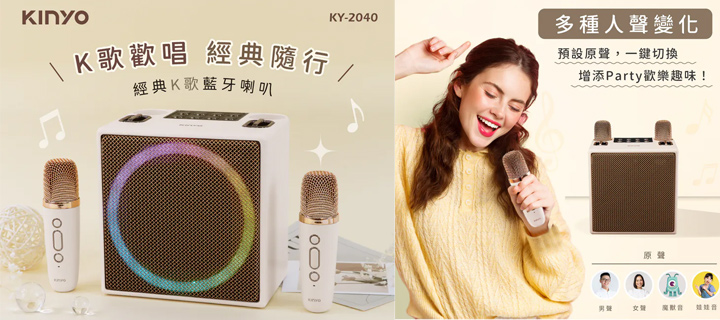 行動KTV【KINYO 經典K歌藍牙喇叭KY-2040 】🎙️附贈2支無線麥克風