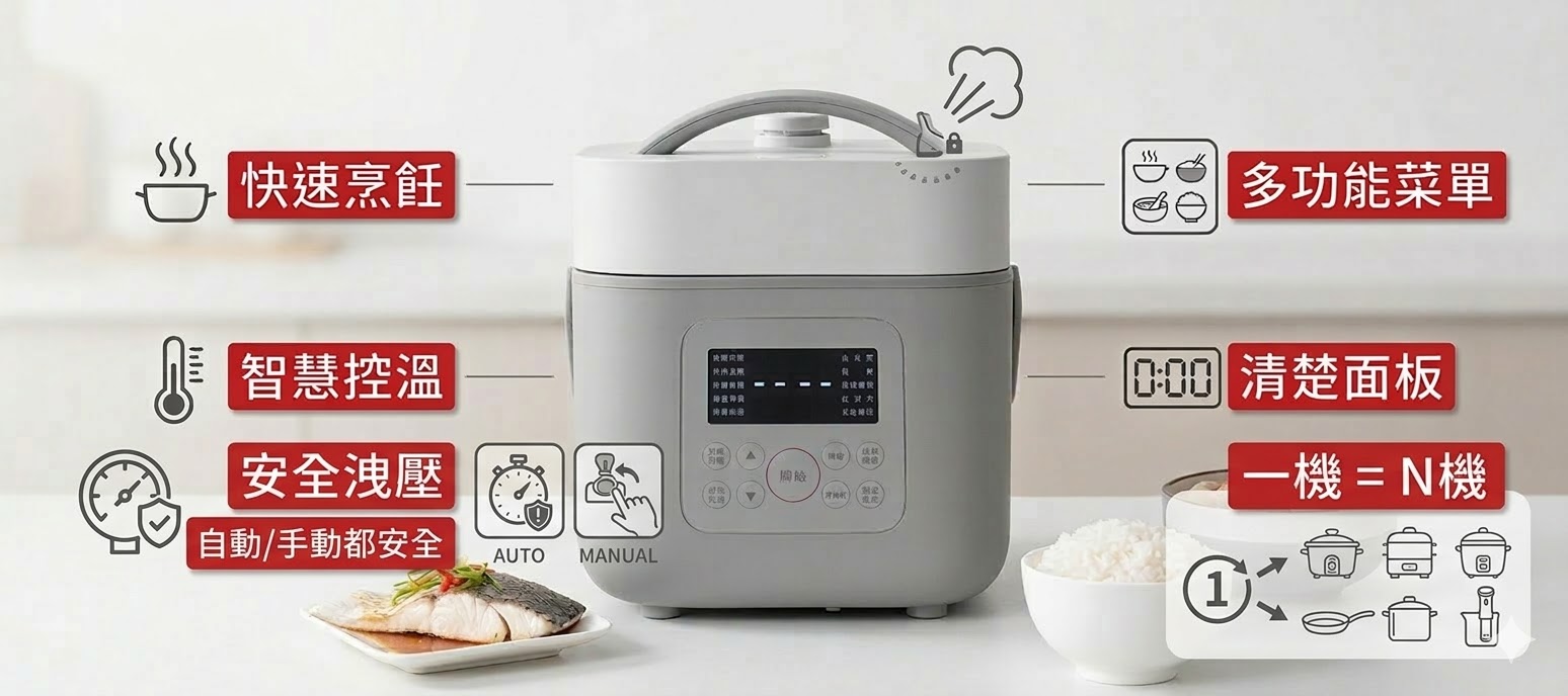 ✅一機=N機,煮飯煮粥、燉湯滷肉做甜點,一指搞定
